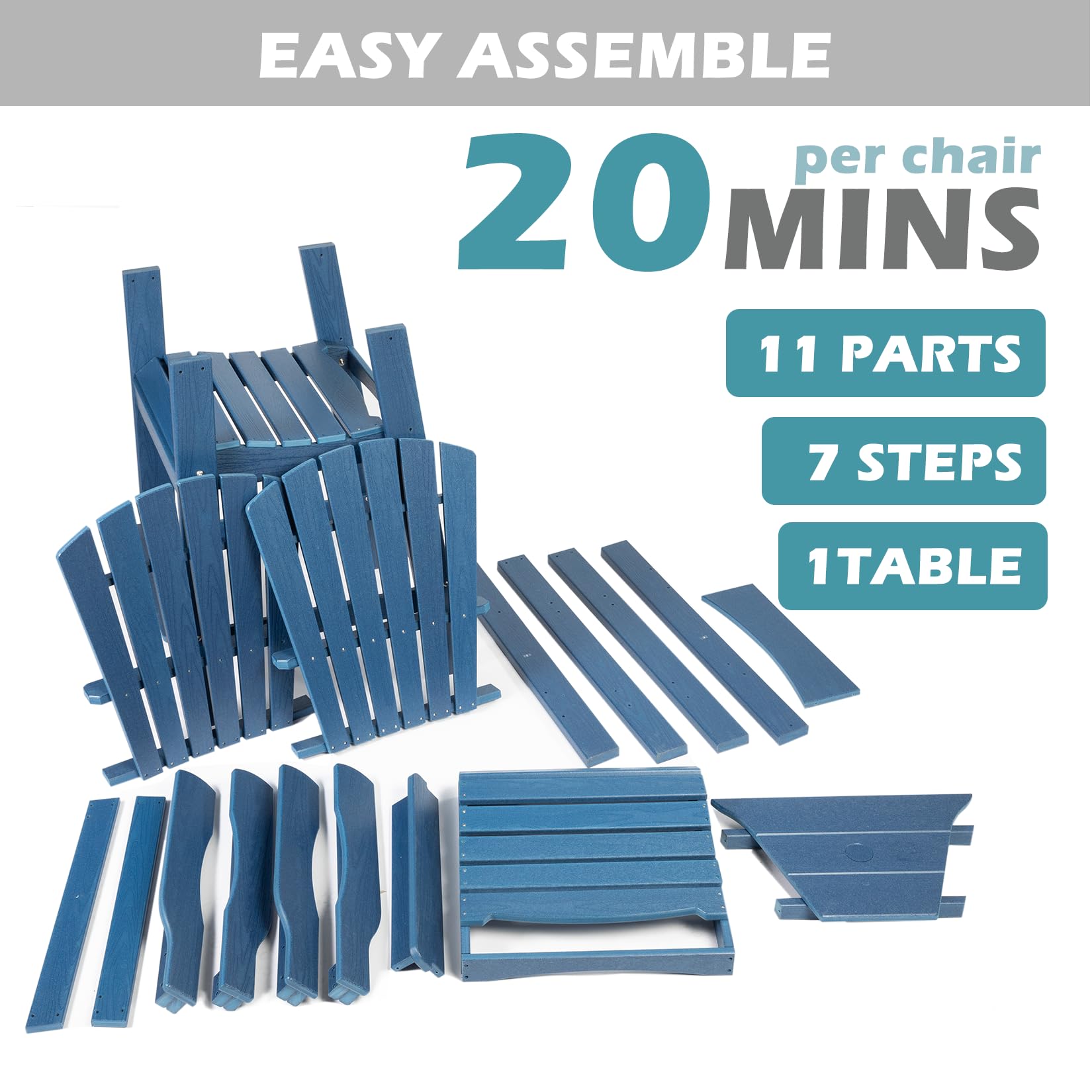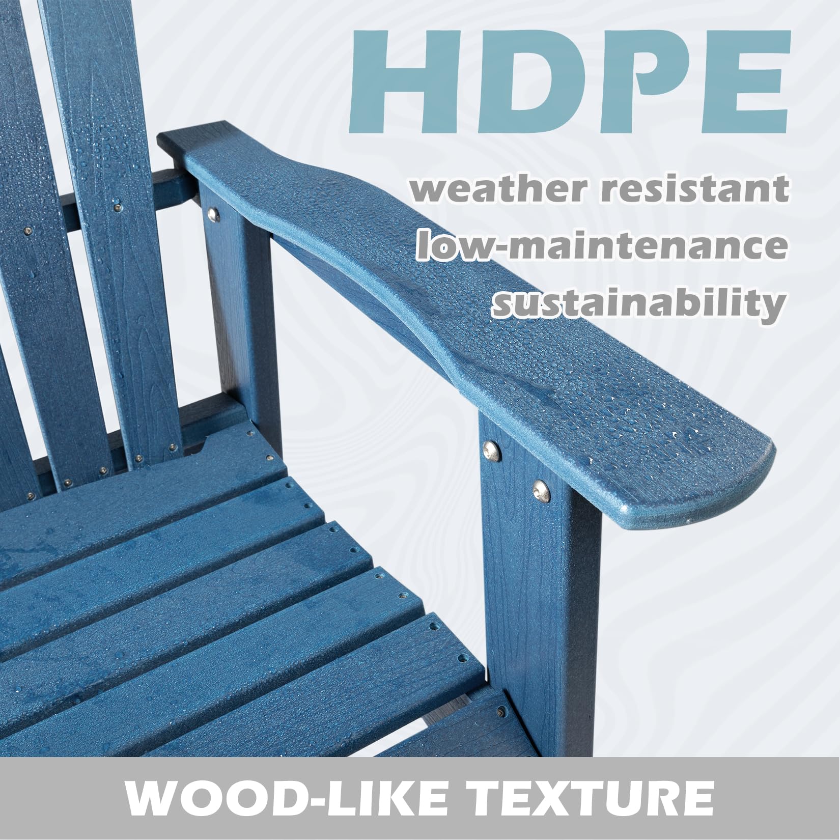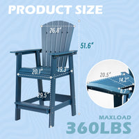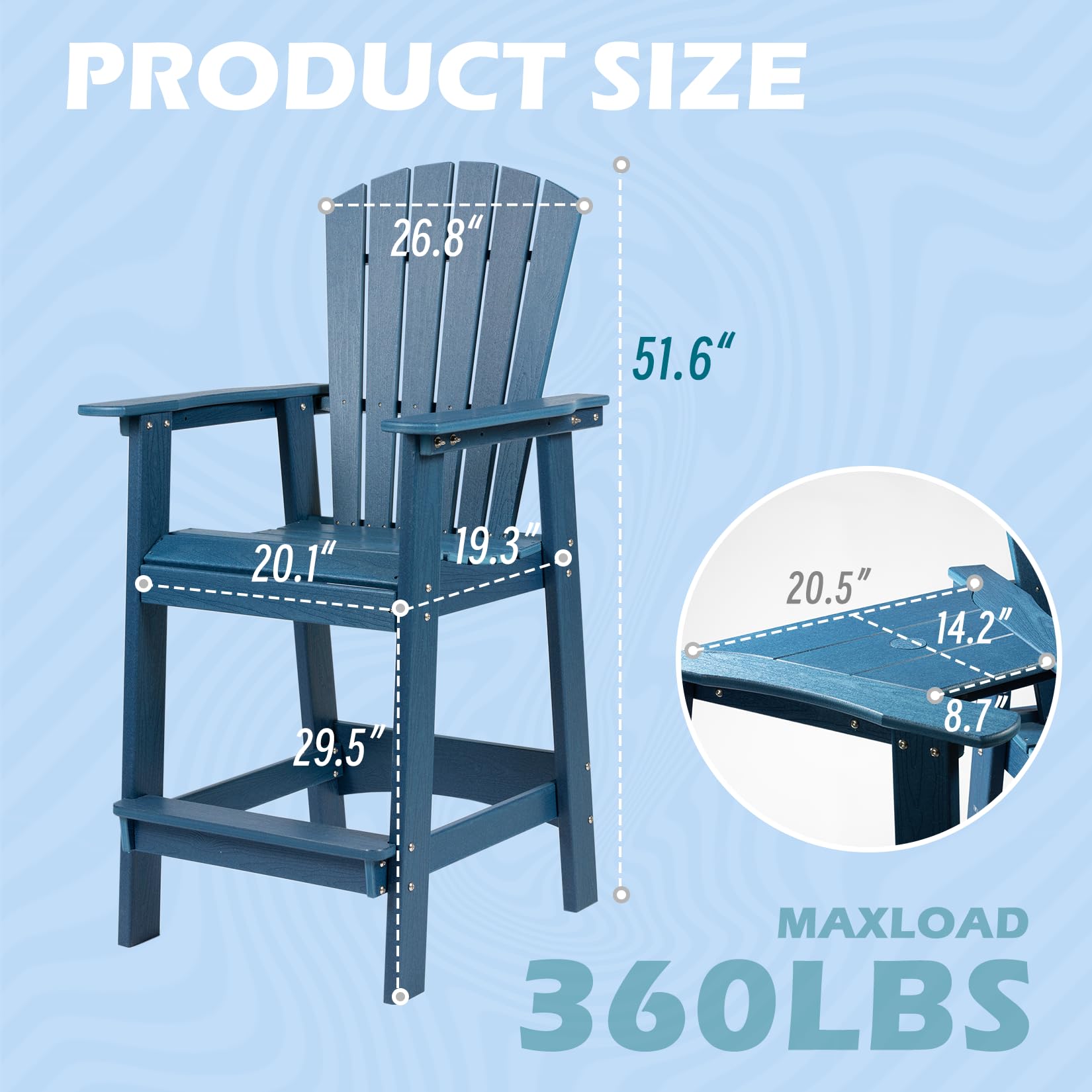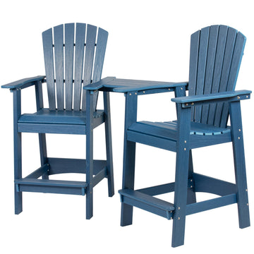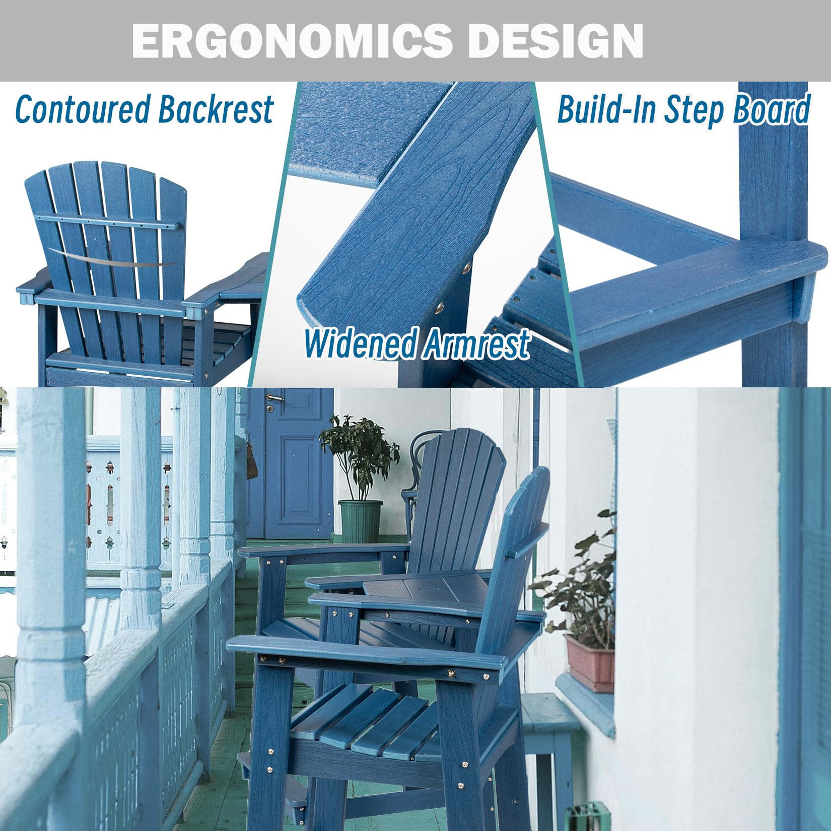 Garvee Balcony Chair Set of 2, HDPE Tall Adirondack Chairs, Contoured Seats & Tray, Weather-Resistant, Blue, for Lawn Pool Backyard