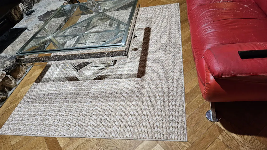 I really like it; it fits in the area I needed it forIt looks textured but it's not. It's just a print of the textureI like the colors, it goes with the color scheme, it is soft and easy to clean.Nice overall.