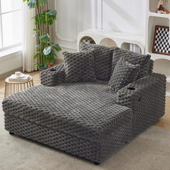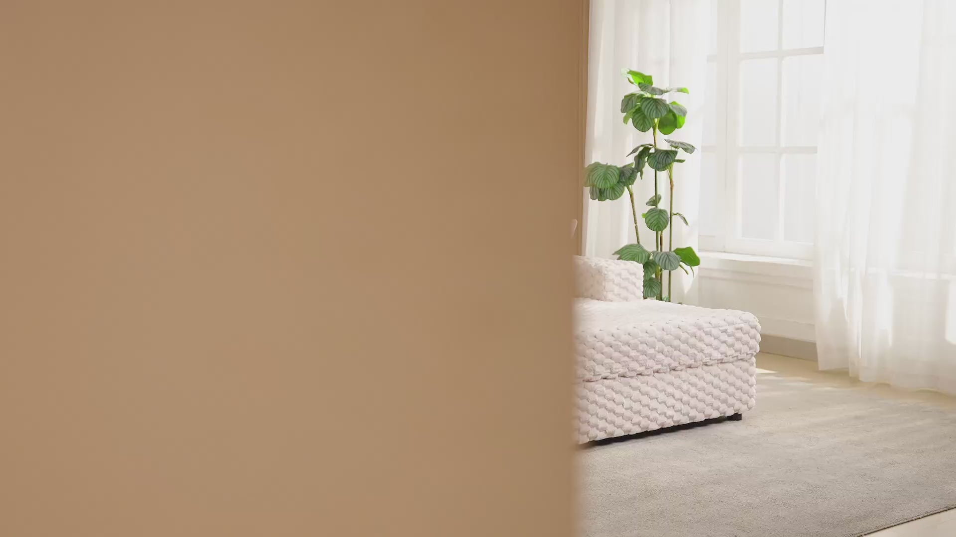 Garvee Oversized Chaise Lounge Chair Indoor, 60 Inch Upholstered Sofa Bed with Throw Pillows and Armrests, Comfy Scalloped Velvet Sleeper Couch for Living Room, Bedroom, Office, Beige