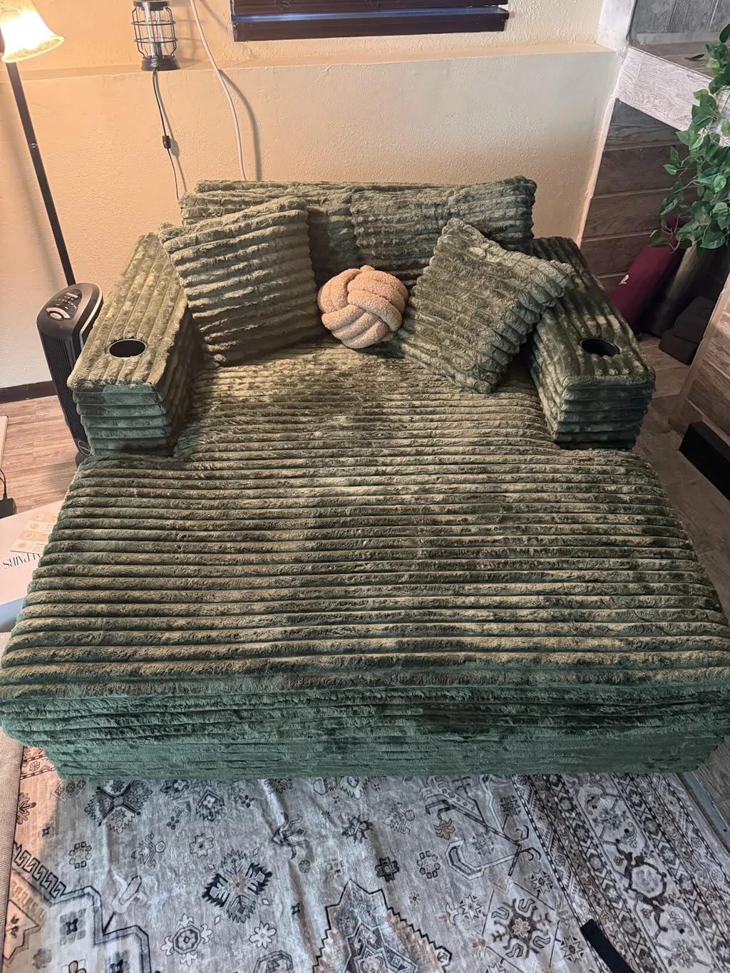 This was a birthday gift for my partner and she absolutely loves it. It’s comfortable after everything has expanded to size. Looks great, quality is there. Instructions were easy to follow and took about 15-20 mins to set up by myself. Only thing I’d say could be improved is the actually stuffing inside the backrest and arm pillows. Which is an easy and cheap fix.