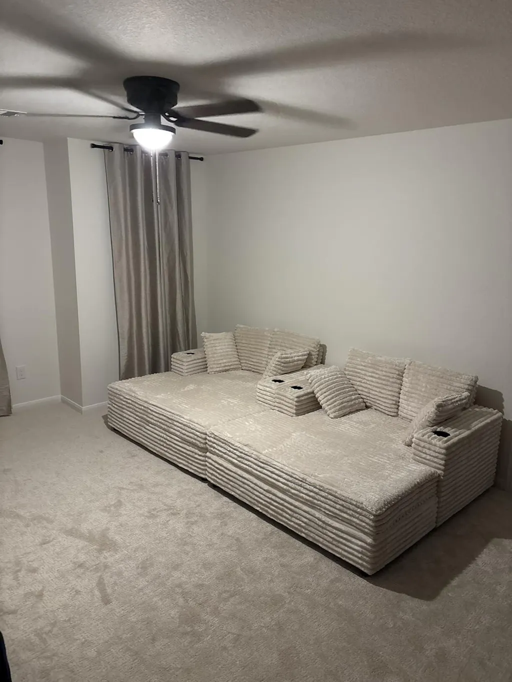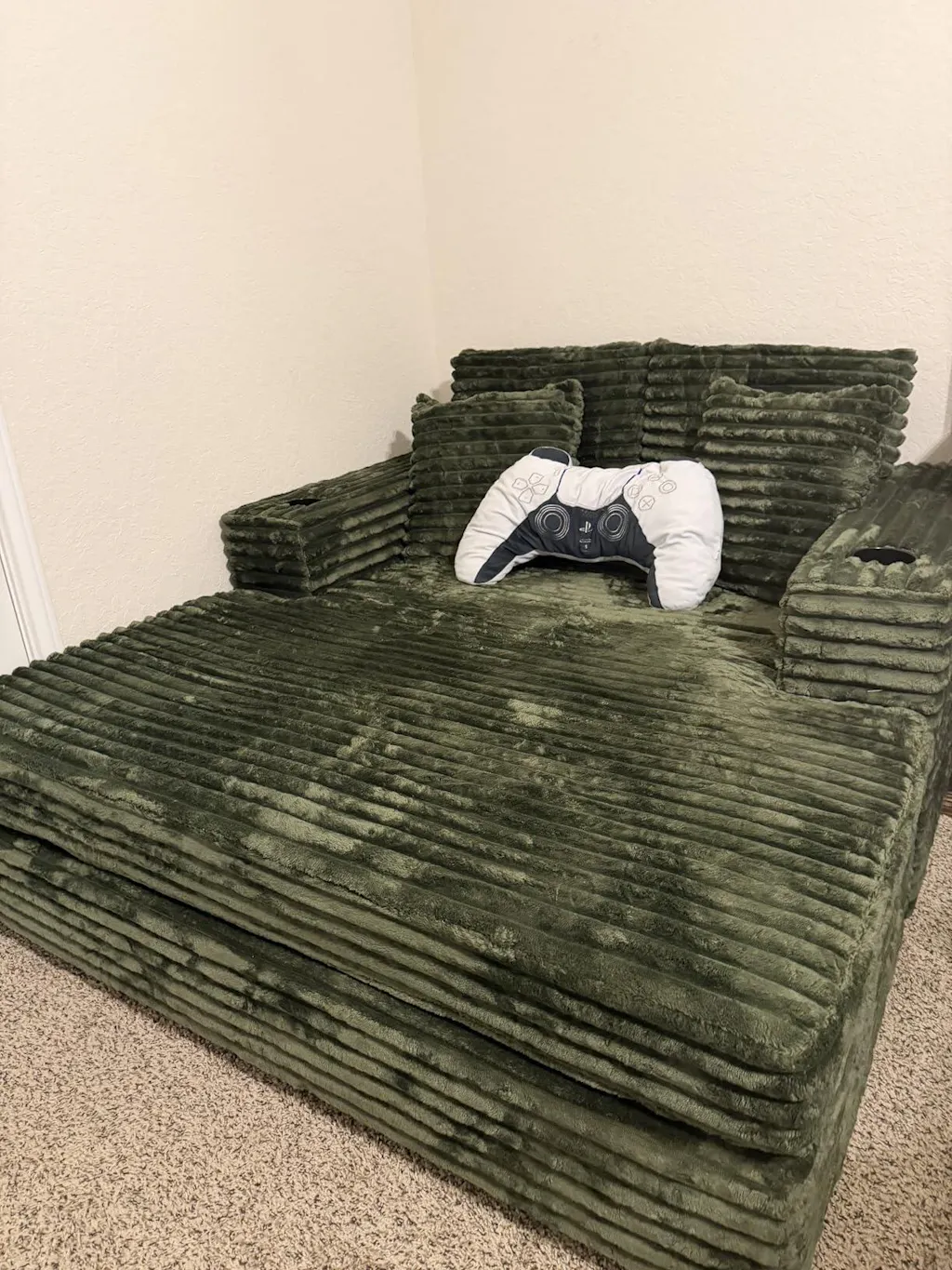 This couch works out great for my kids game room. I didn’t notice it also has charging ports. Bonus. I assembled these myself and it was easy. Pro tip - don’t put the feet on until last. It helps get the back piece to slide in easier. Also there is a Velcro strip at the end of the couch to help the cushion from sliding around. I almost didn’t notice .. you have to pull the felt strip off the cushion part. It is a very firm couch. I suspect it’ll soften up over time but I plan to buy some stuffing just to give it a little more cushion. Overall I am happy with my purchase.