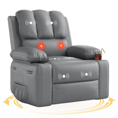 Garvee Oversized Recliner Chairs with Heat and Massage - 360° Swivel Lazy Boy Recliner Chair for Adults- Manual Rocking Chair with Cup Holder for Living Rooms, Bedrooms and Nurseries - Coffe