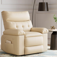 Garvee Oversized Recliner Chairs with Heat and Massage - 360° Swivel Lazy Boy Recliner Chair for Adults- Manual Rocking Chair with Cup Holder for Living Rooms, Bedrooms, and Nurseries - Creamy
