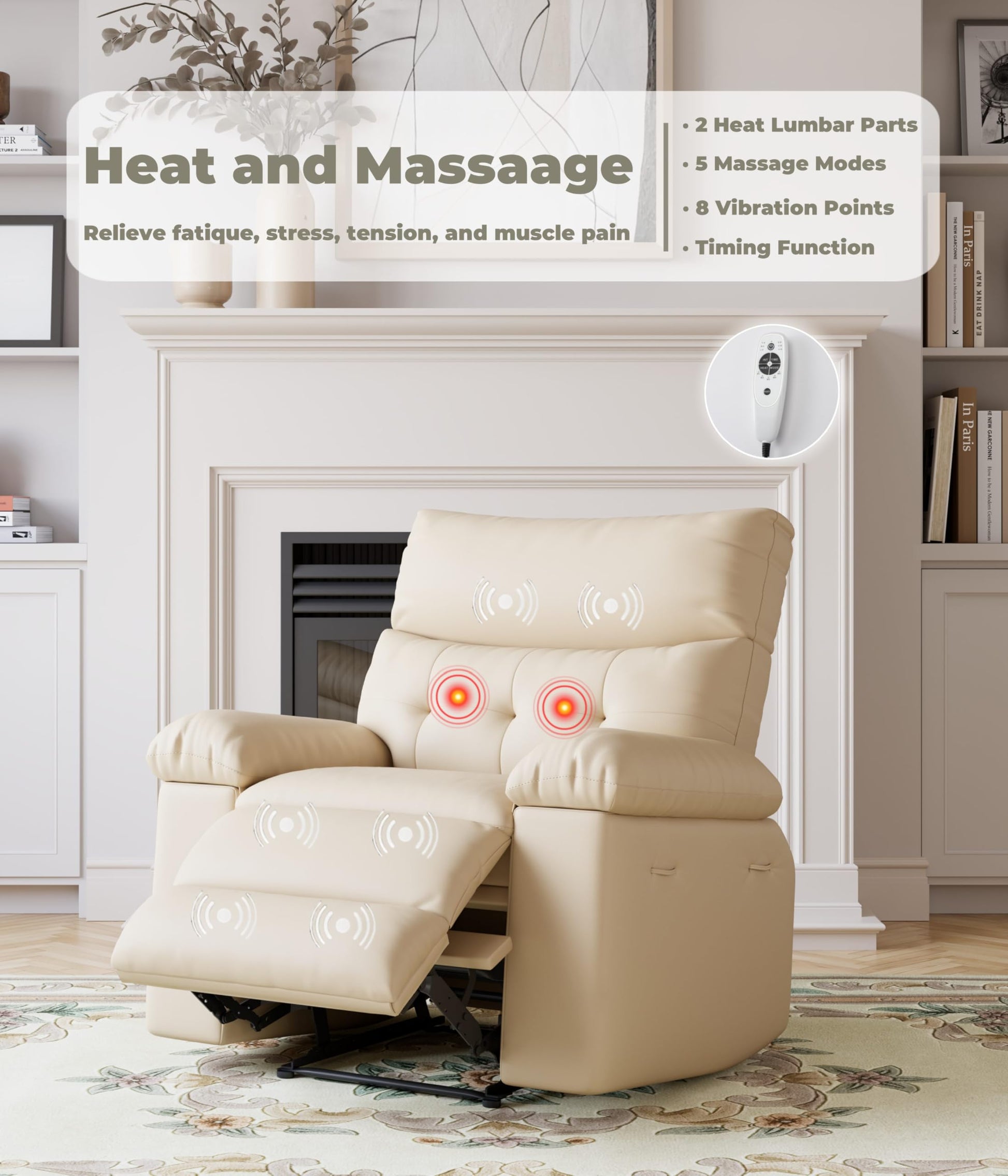 :M01 Beige / Heat / Massage Recliner / Oversized
