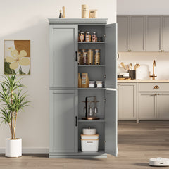 - Clasic Pantry: Enjoy thoughtfully designed storage that blends functionality with aesthetic appeal. Featuring a classic solid-color design, this tall kitchen pantry cabinet adds elegance to any kitchen, dining room, bathroom, or hallway. It serves as a versatile centerpiece, providing ample storage while enhancing your decor