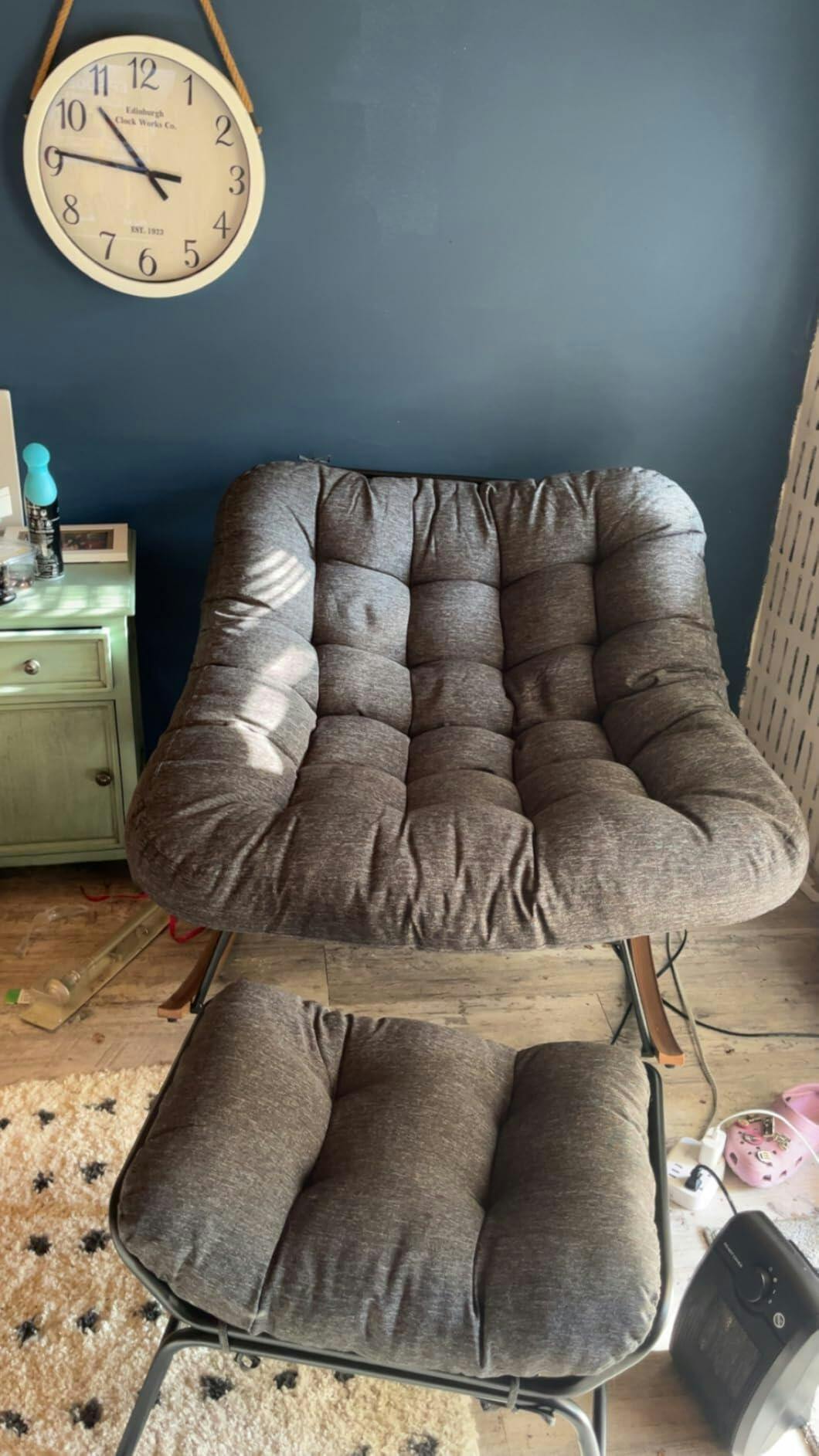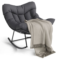 Garvee Papasan Rocking Chair with Footrest, Metal Patio Lounge Rocking Chair with Ottoman & Thick Cushion, Patio Comfy Modern Egg Rocker for Balcony Backyard Porch Bedroom, Dark Grey