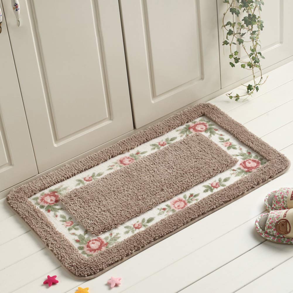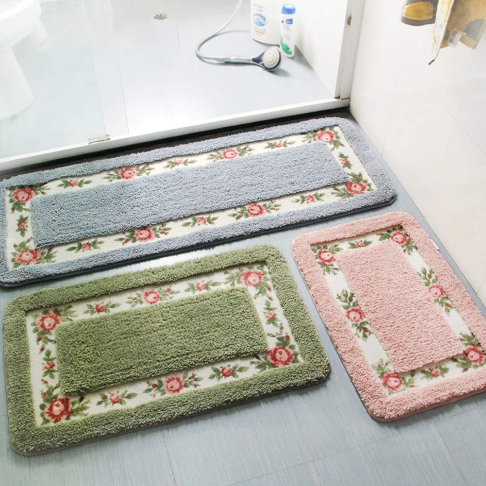Garvee Pastoral Style Rose Pattern Non Slip Water Absorption Rectangle Carpet Floor Mat