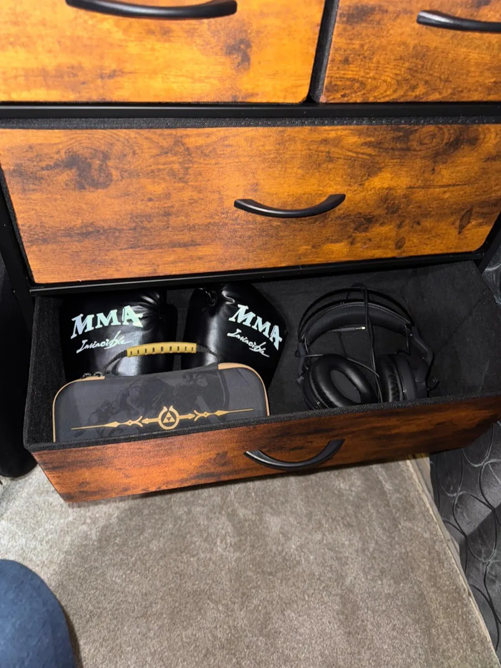 - Five foldable drawers for ample storage space