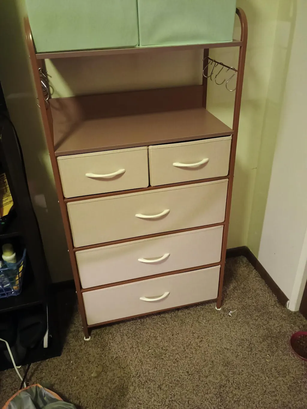 Five foldable drawers offer plenty of space to organize clothes, linens, and other belongings neatly.