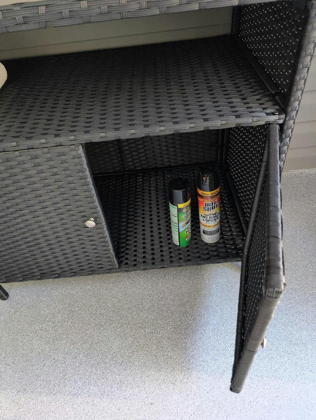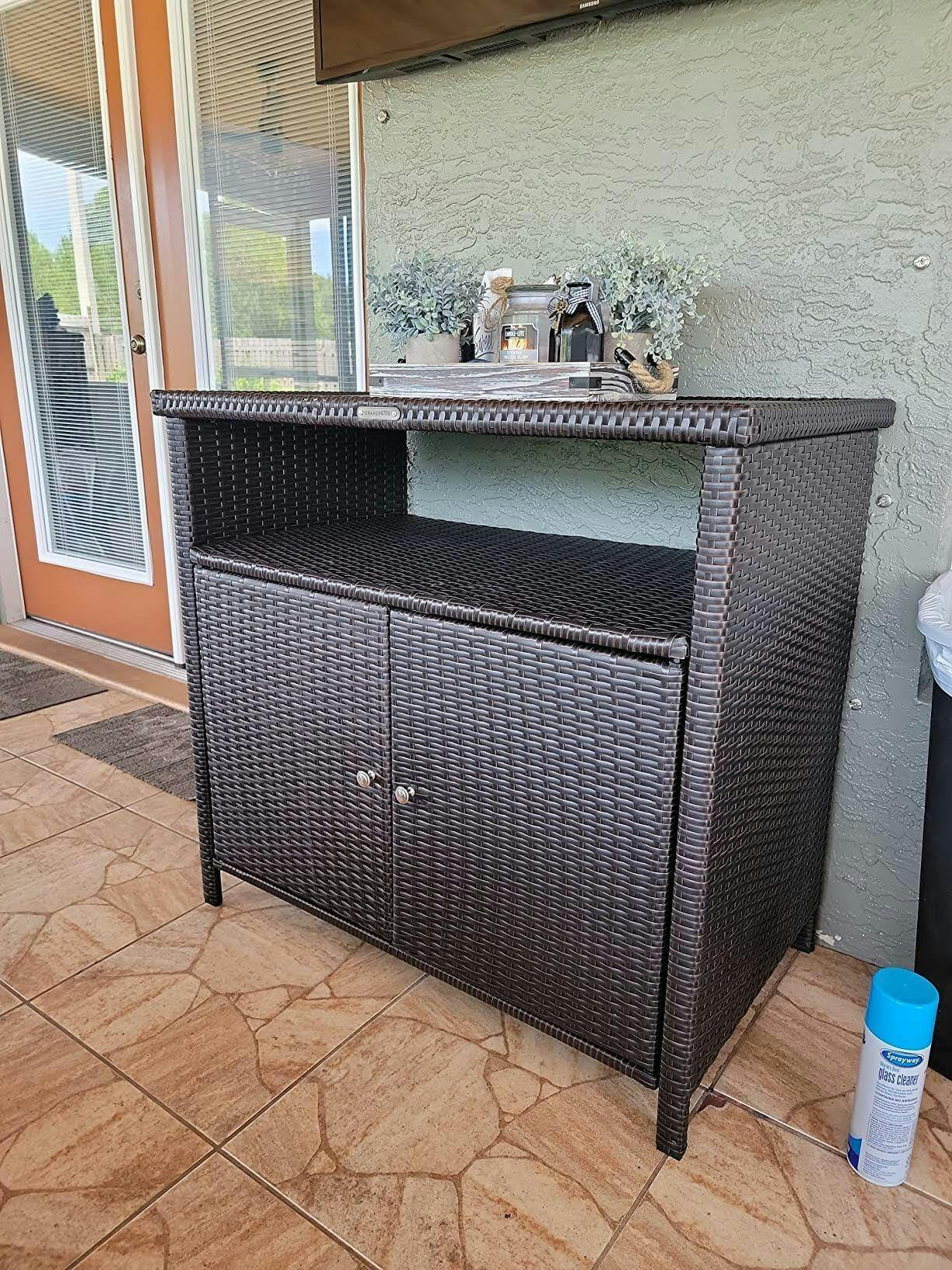 Garvee Patio Bar Table with 2-Door and Shelf,Patio Outdoor Wicker Storage Cabinet with Shelf,Powder Coated Steel,All Weather Resin Wicker,Patio Pool Garden Kitchen,Brown