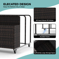 Garvee PE Rattan Outdoor Pool Caddy With Rolling Wheels, Patio Wicker Poolside Float Storage Basket for Cushions, Floaties, Noodles, Life Vests, Beach Balls, Toys