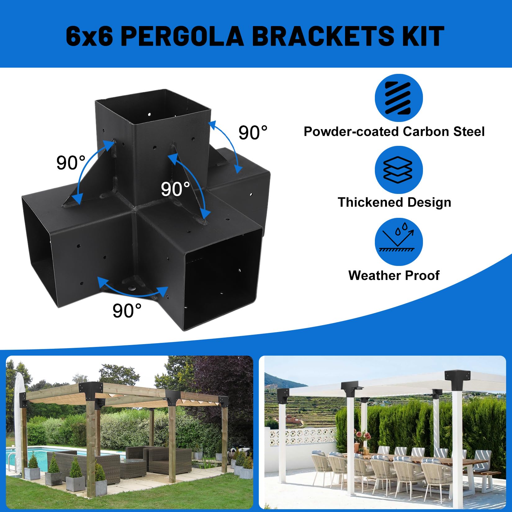 - Robust Construction: Crafted from heavy-duty powder-coated carbon steel with precision welding techniques, these pergola hardware offer exceptional stability and durability, ensuring resistance against breakage and deformation for lasting performance.