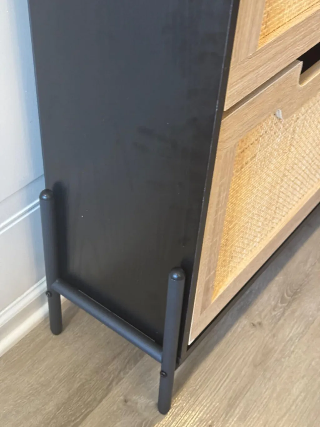 Elegantly crafted with natural rattan and equipped with easy-pull handles, this cabinet combines beauty with practicality.