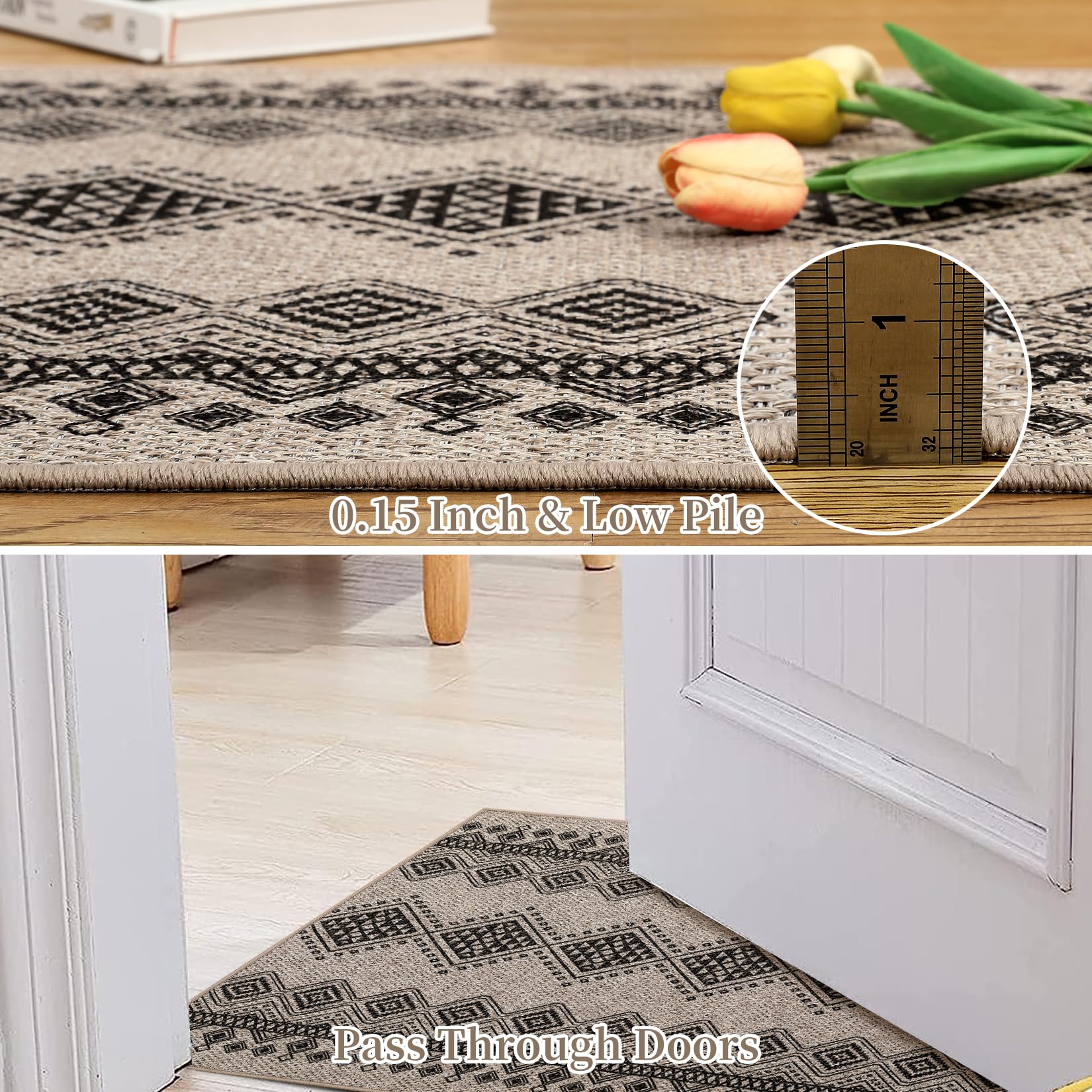 Garvee 10'x13' Area Rug Boho Textured Design Living Room Non Slip Low-Pile Soft Tribal Print Bedroom Rug Stain Resistant Playroom Carpet Office Black