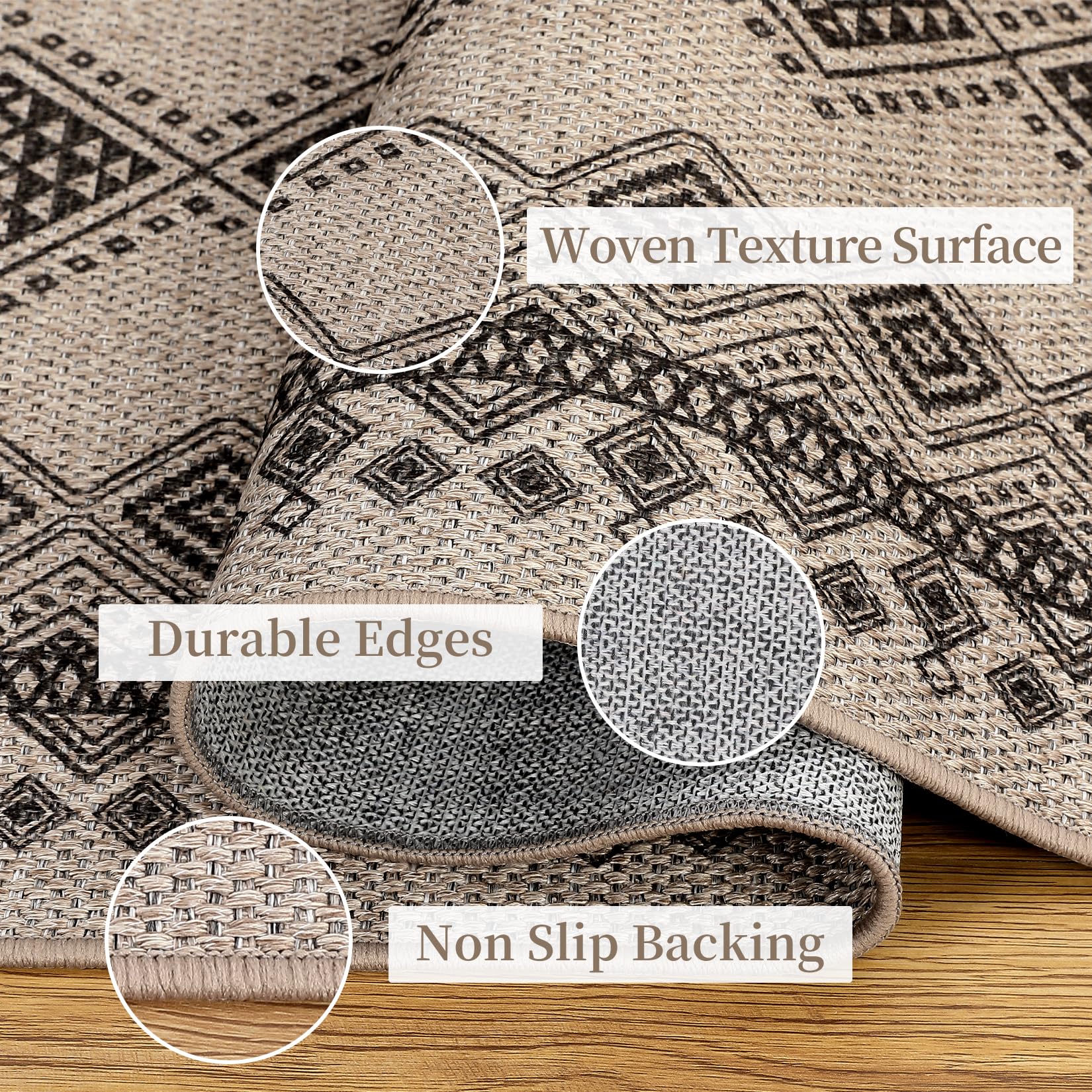 Garvee Beige 5x7 Washable Printed Braided Rug Non Slip Stain Resistant Carpet for Living Room Dining Room Bedroom