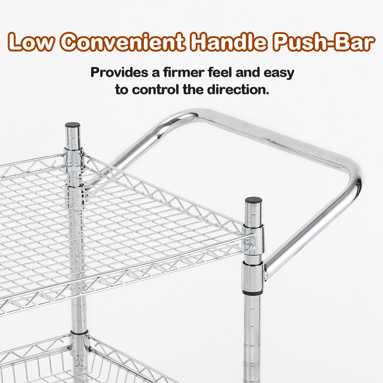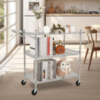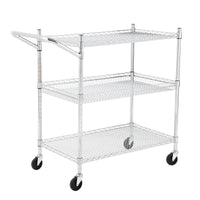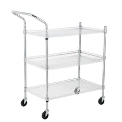 - Versatile Design: Equipped with a handle bar and 3 wire shelves, this rolling cart is perfect for kitchens, warehouses, garages, offices, and restaurants, making it easy to transport heavy and bulky items.