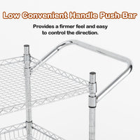 Garvee Commercial Grade Utility Cart - 3 Tires, Wire Rolling Cart with Handle Bar, Alloy Steel Food Storage Trolley, Low Handle