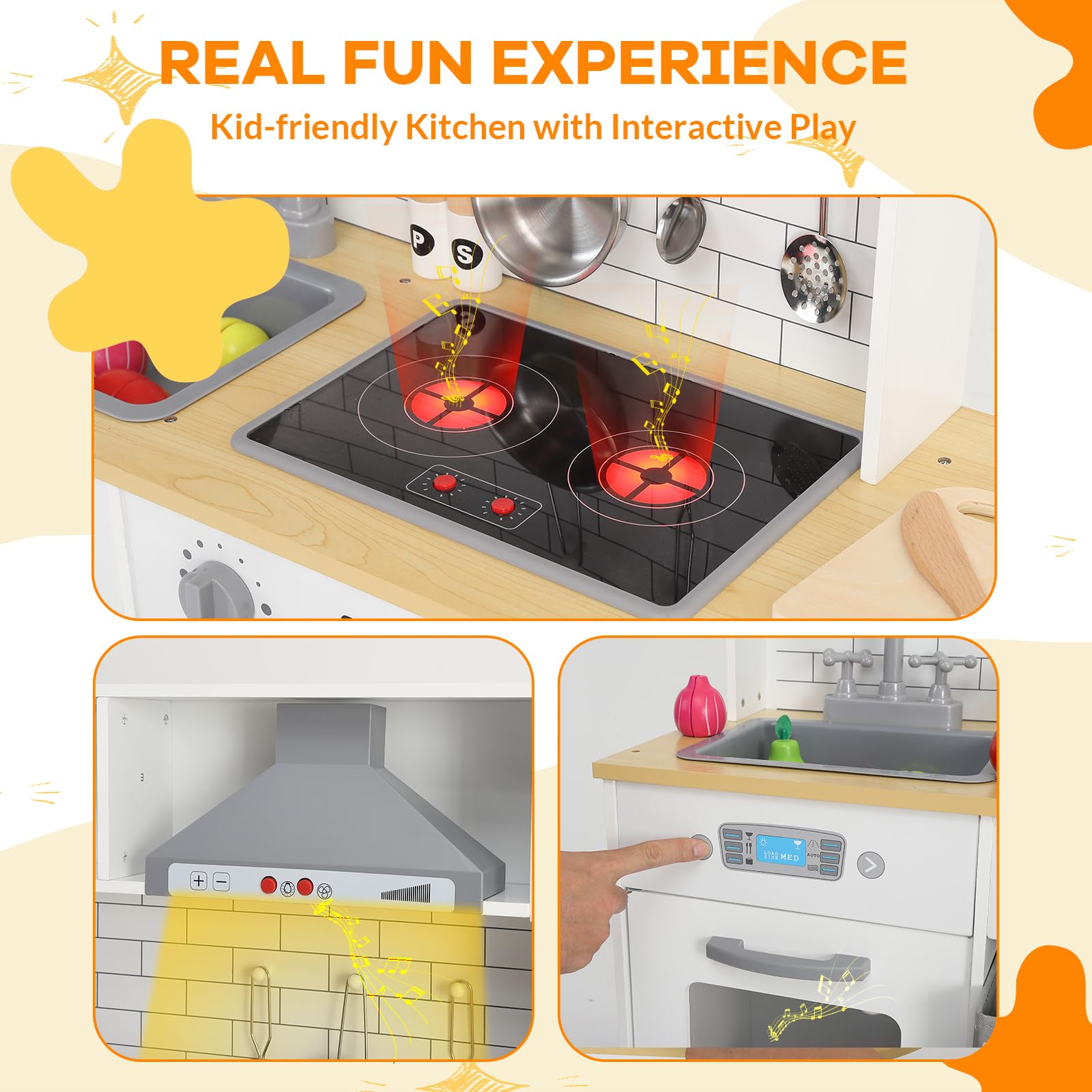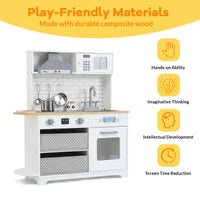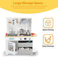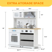 Garvee Play Kitchen for Kids, Wooden Kitchen Toy Playset with Stove, Oven, Sink and 17 Pcs Toy Food & Cookware Acces, Pretend Play Kitchen with 2 Fabric Drawers for Toddlers, Preschoolers Age 3+ Years, White