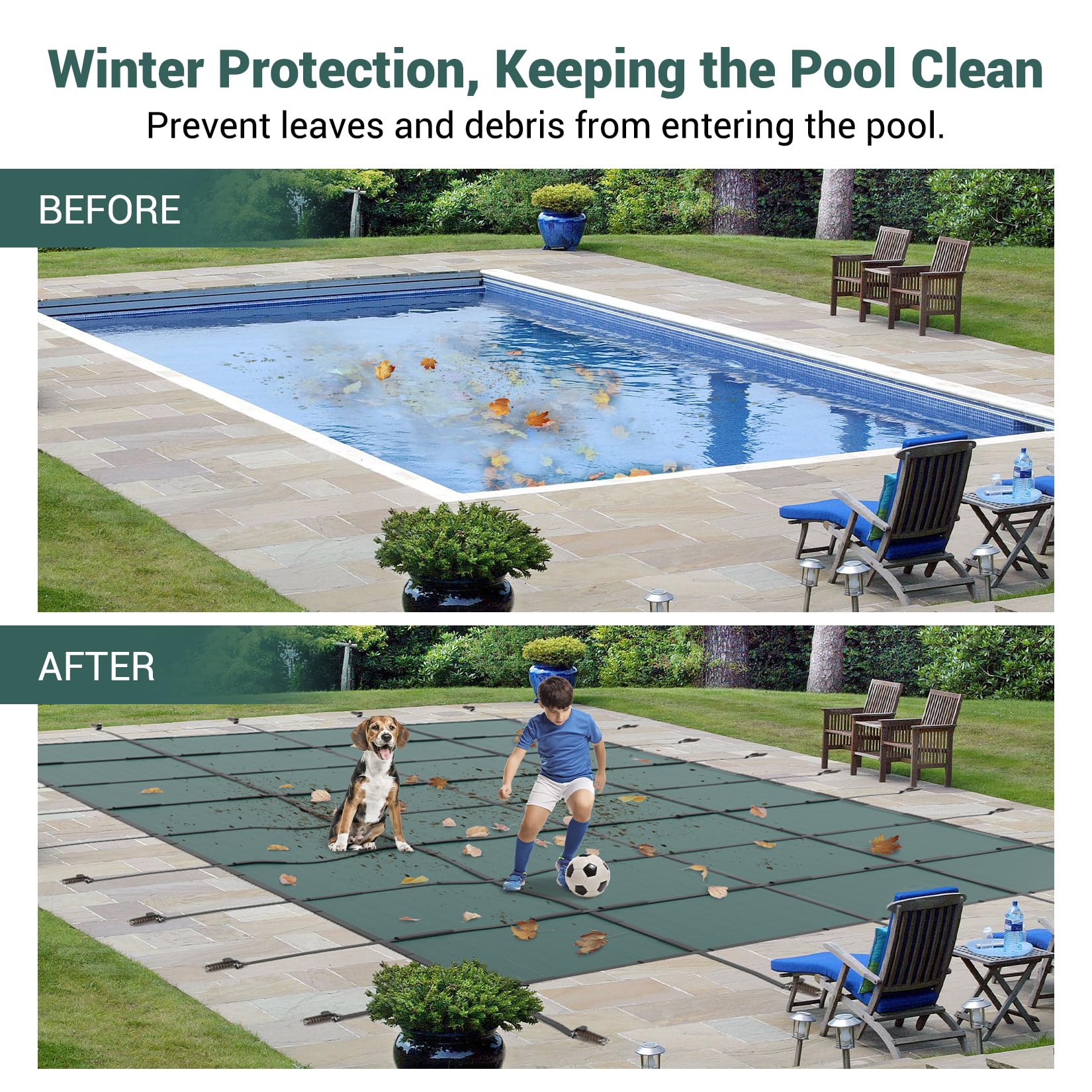 Garvee 20x38 Ft Rectangle Inground Pool Cover - Winter Safety Cover for Children & Pets, 500 lbs Capacity, High-Strength PP Material, Green