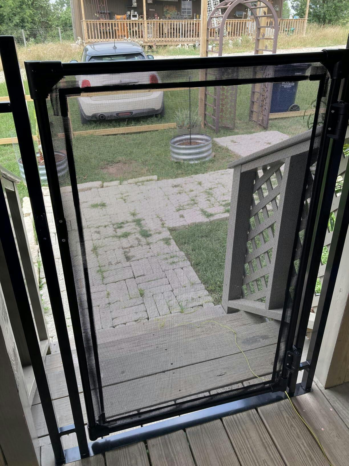 Excellent gate! This gate is sturdy and it looks very nice. It’s a well made gate that can be used for other areas, not just pools. When I opened the door to my porch my pug hilariously ran head first into the gate, bounced off and tried again. The gate was unaffected and held its ground firmly. It was an unintentional test of the screen material and it passed with flying colors.