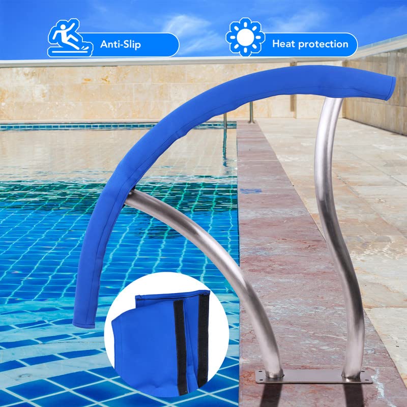 GARVEE's 2PACK Pool Handrail combines top-tier materials with thoughtful design. The 304 stainless steel construction guarantees rust resistance, while the ergonomic design with a blue grip cover ensures comfort and prevents overheating in the sun.