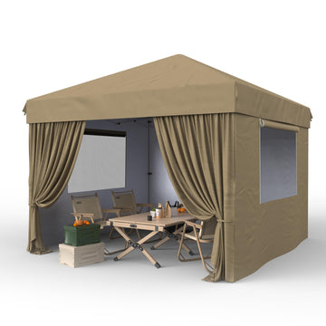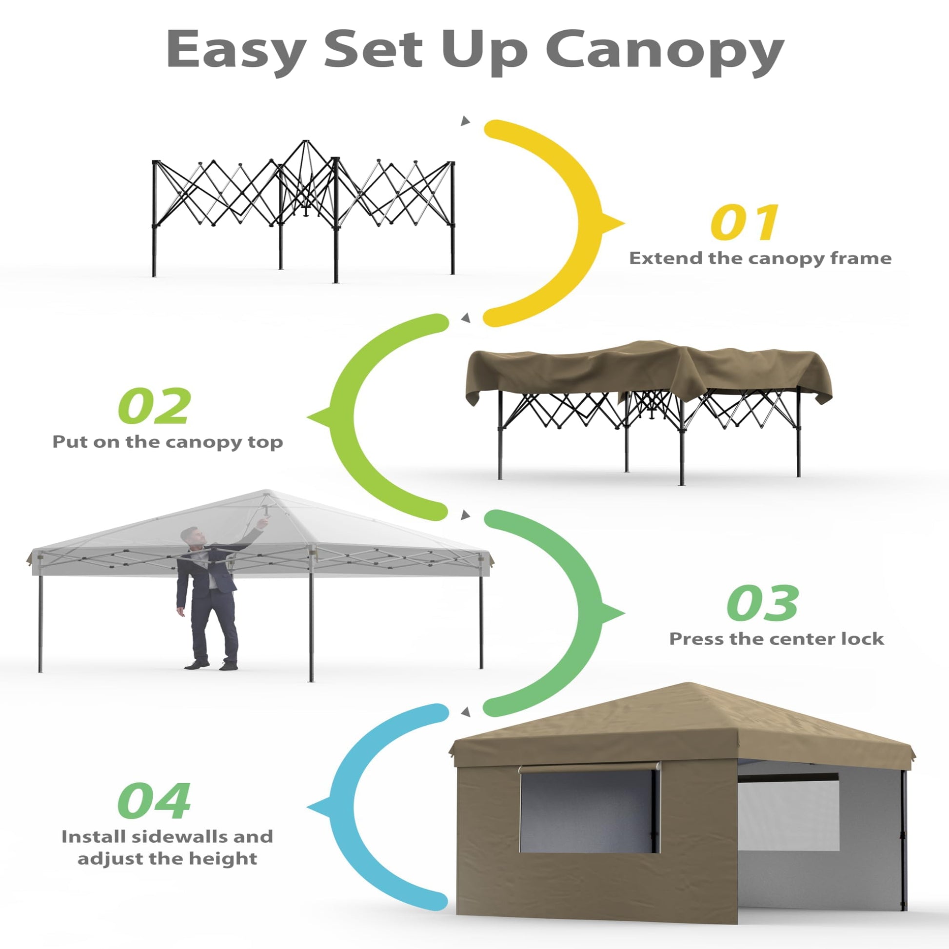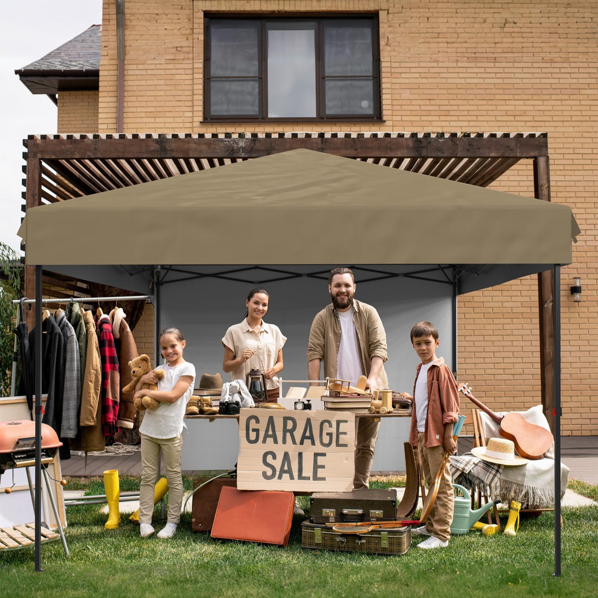 Garvee 10'x10' Pop Up Canopy, Heavy Duty Tents for Parties, One Person Set Up Event Tent, Brown