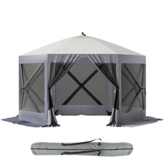 Garvee Pop-Up Hexagon Gazebo, Outdoor Camping Tent, Screen Shelter Tent, Portable Carry Bag,Fiber Poles, Guy Rope and Ground Pegs for Patio, Lawn, Backyard,Brown + Beige