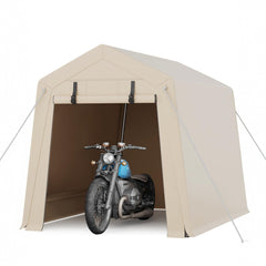 Garvee Portable Outdoor Storage Shed 6x8 FT with Dual Zipper Doors & Vents, 240G Waterproof PE Tarp, Heavy-Duty Steel Frame, UV-Resistant Gray, Carport for Motorcycle & Tools