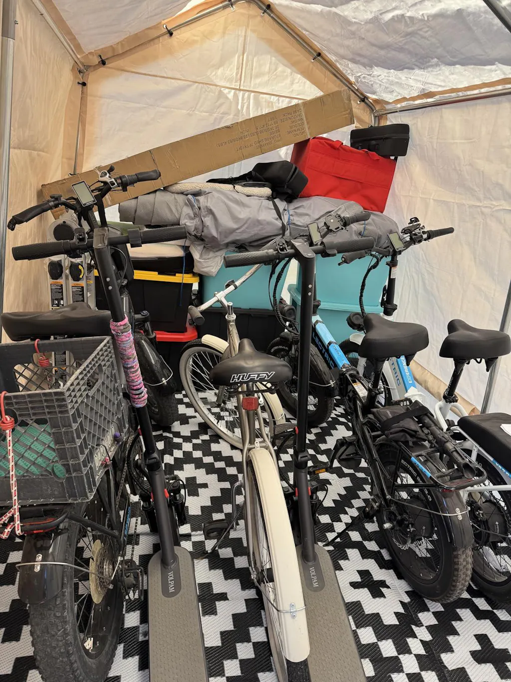 Nice tent for storing a four wheeler. Not a lot of extra room for anything else. Does NOT have two zipper doors on ends as advertised. Except for the bottom horizontal poles on each side, tent is fastened to the poles with bungee cords. Material is a plastic tarp so hopefully it holds up. Set up is easy, but is easier with two people. Worth the money for what I needed.
