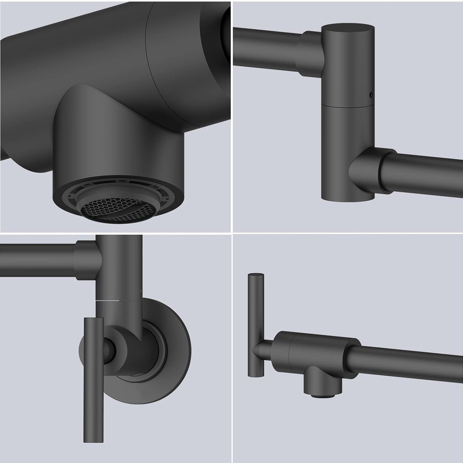 Garvee Pot Filler Faucet, Wall Mount Lead-Free Brass Pot Filler Kitchen Faucet with cUPC Certified, Folding Stretchable Kitchen Faucet with Double Joint Swing Arms, Single Hole - Matte Black