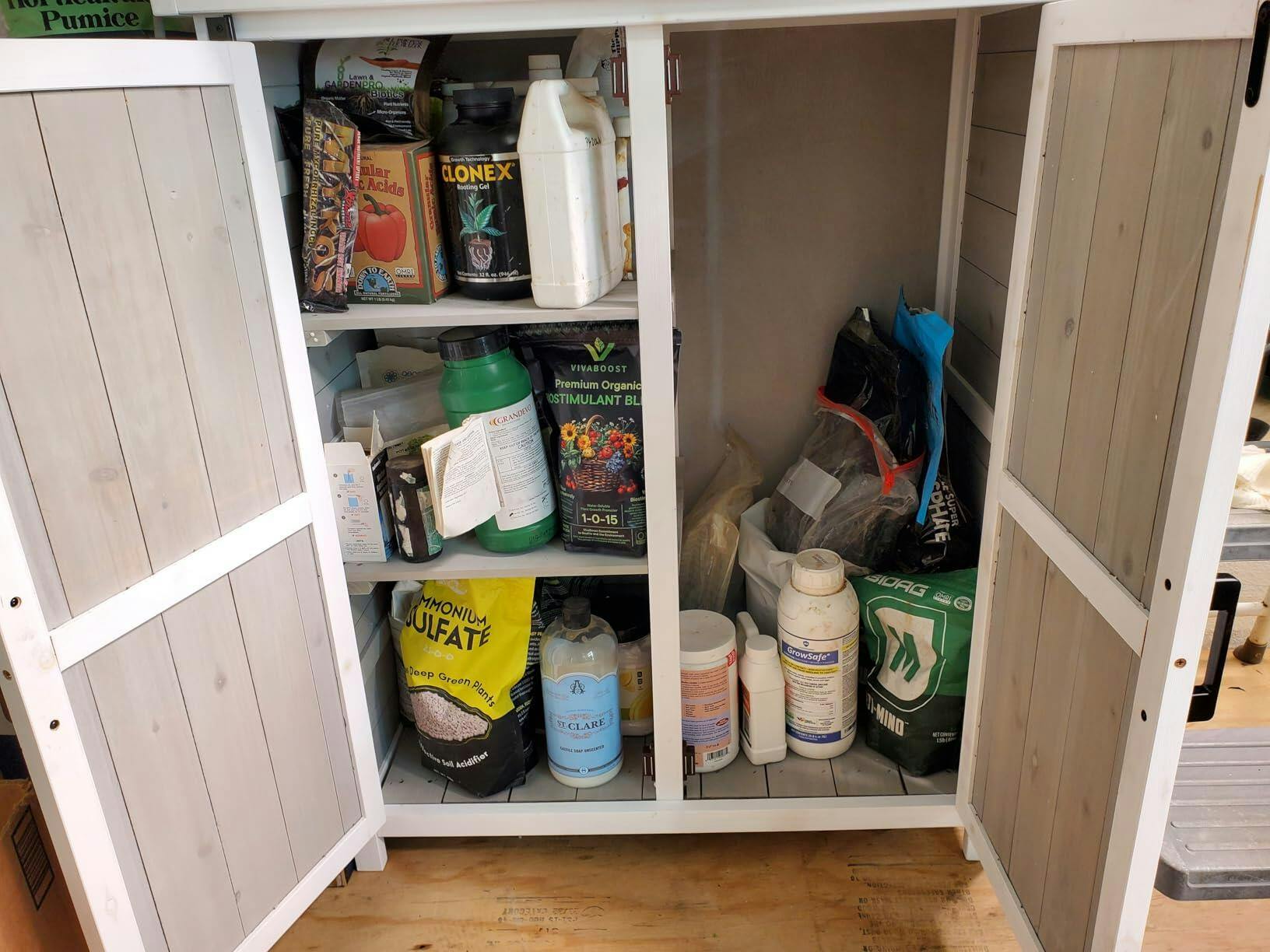 This went together fairly easily, and the instructions were adequate. It is a bit lighter than I would have expected, but in most situations, I think it would stand up to use just fine. For heavy use or very frequent use, I’d prefer something more heavy-duty than this potting bench. It does fit most of the amendments I keep around and offers a smooth wipeable top for transplanting. I certainly appreciate having it in our garden area!