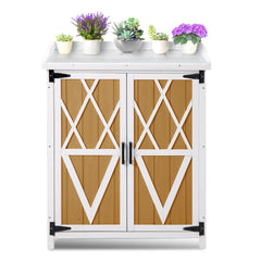 Garvee Outdoor Potting Bench with Metal Tabletop – Wooden Storage Cabinets, Weatherproof, Adjustable Shelf & Doors for Garden, Patio & Lawn