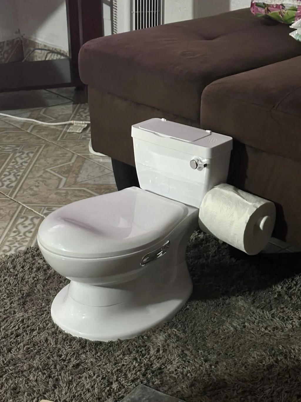 Potty Training Toilet is for Baby, you can put it in the living room, bathroom, bedroom and so on. It is small one and very easy removable anywhere