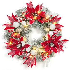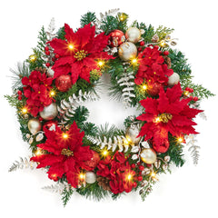 - 🌟 24-Inch Pre-Lit Christmas Wreath: Elevate your holiday décor with this large, eye-catching wreath designed for front doors, fireplaces, or windows. Features lush greenery branch, vibrant artificial floral and Xmas ball ornaments for a festival look.