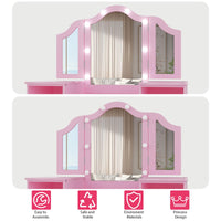 Garvee Kids Vanity Table Set with LED Lighted Mirror, Jewelry Storage and Stool, Pink