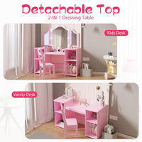Enchanting Pretend Play Hub: Wooden kids vanity with desk, stool, real mirror, and storage inspires...