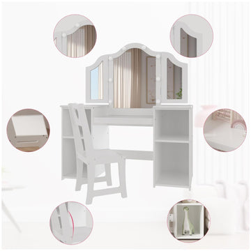 Garvee Princess Vanity Set for Toddlers - Kids Vanity with 3 Mirror & Light, and Stool, White