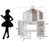 The girls' vanity set measures 37.8"(H) X 23.6"(L) X 11.8"(W), while the stool is 10.2"...