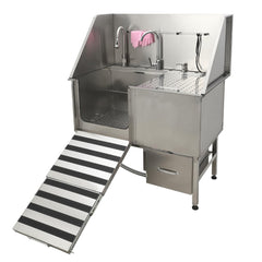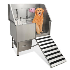 Garvee Professional Dog Grooming Tub, Stainless Steel Dog Wash Station with Foldable Ramp, Storage Drawer, Floor Grate & Faucet/Dog Bathtub for Large, Medium & Small Pets - Right Door (38")