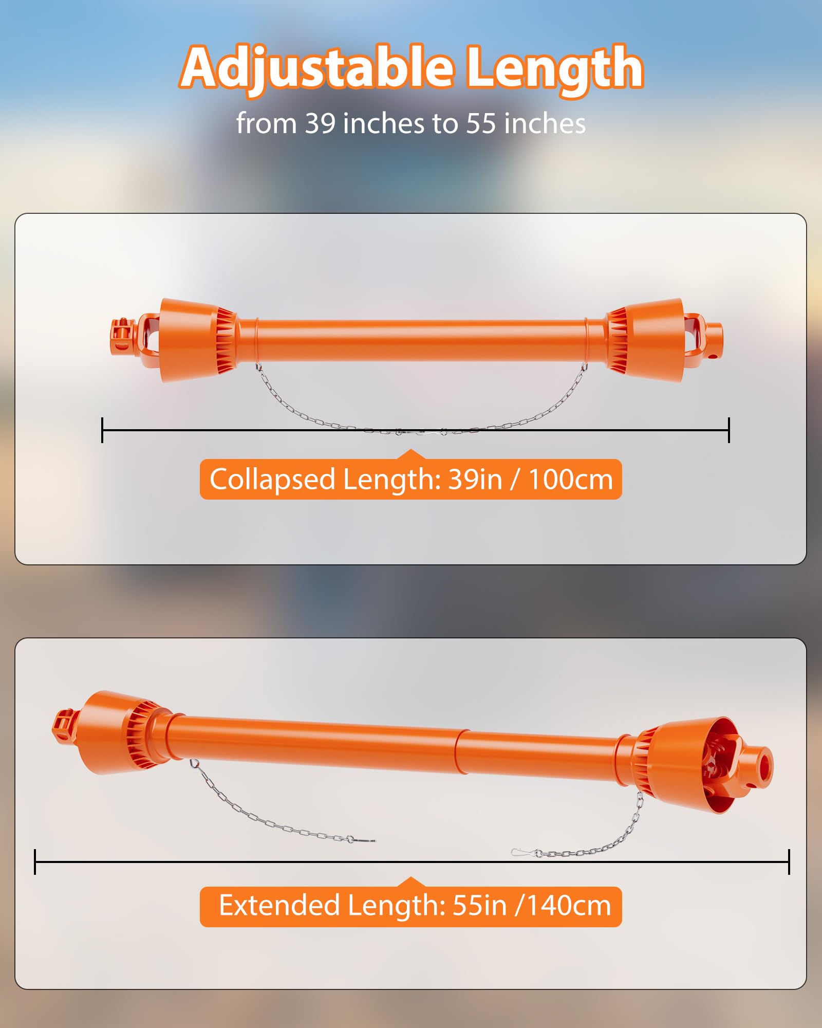 Garvee PTO Drive Shaft 1 3/8" PTO Shaft, 39"-55" Brush Hog PTO Shaft, 6 Spline End Round End PTO Driveline Shaft, Series 4 Tractor for Bush Hog,Finish Mower,Rotary Cutter