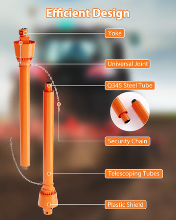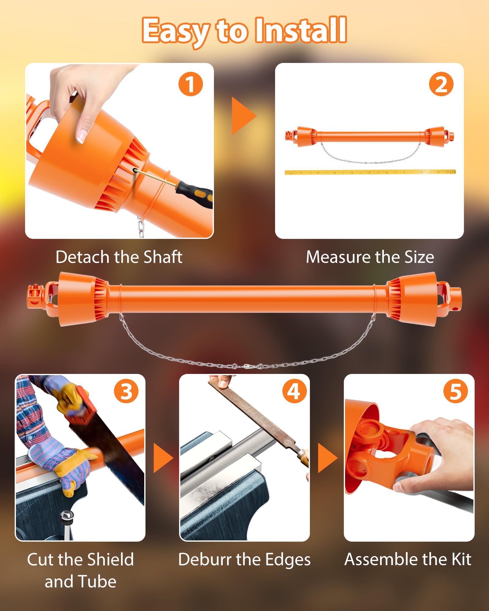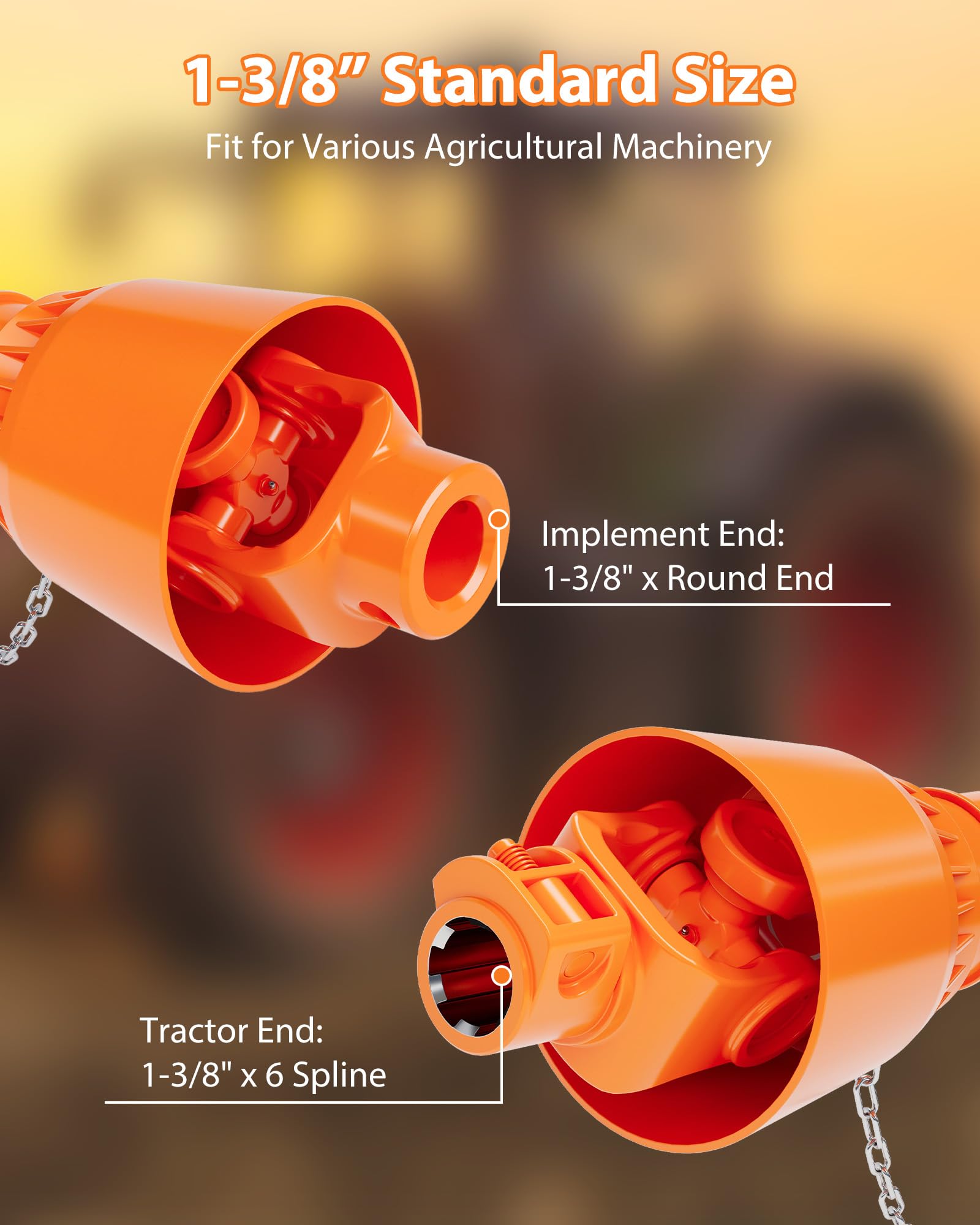 Garvee PTO Drive Shaft 1 3/8" PTO Shaft, 43"-61" Brush Hog PTO Shaft, 6 Spline End Round End PTO Driveline Shaft, Series 4 Tractor for Bush Hog,Finish Mower,Rotary Cutter