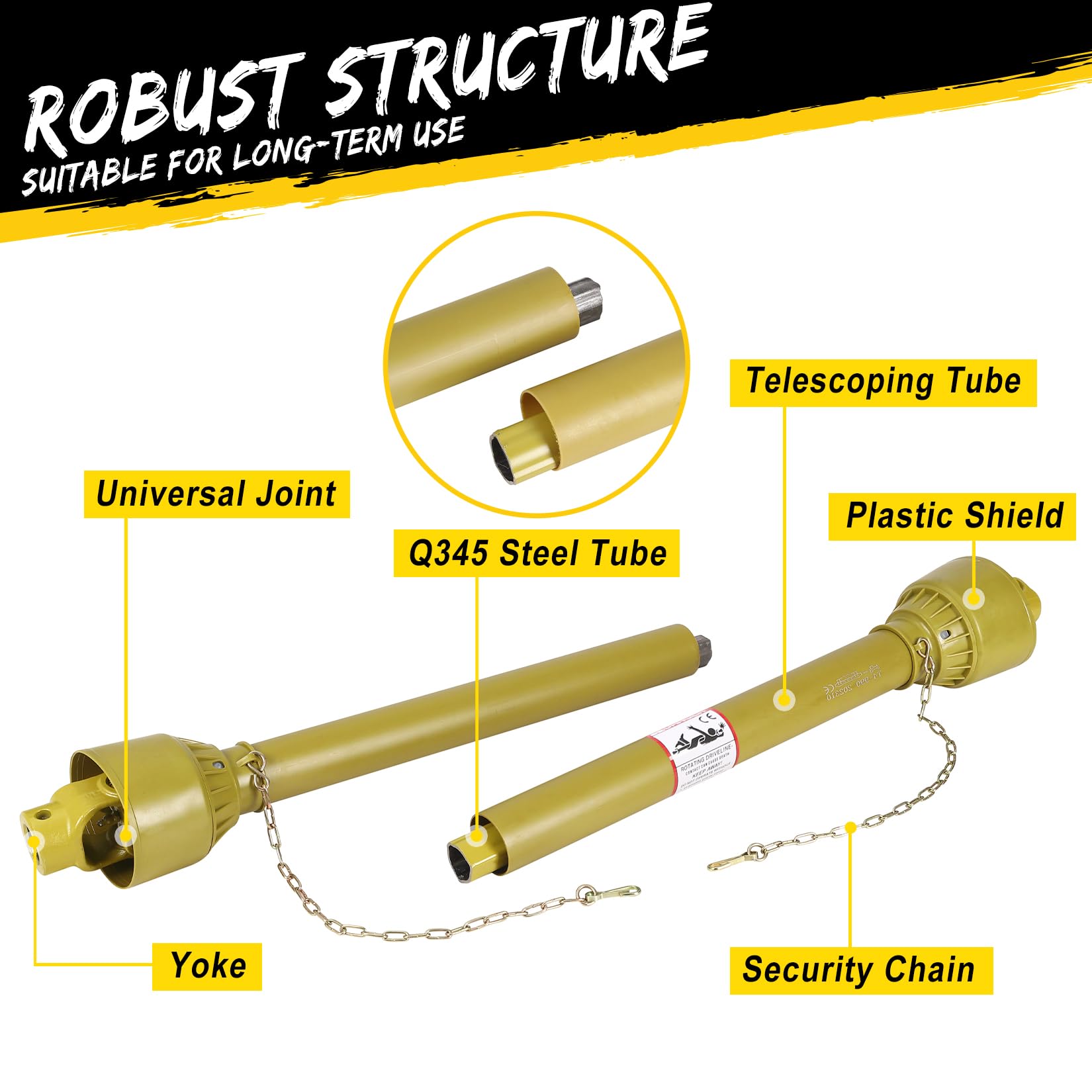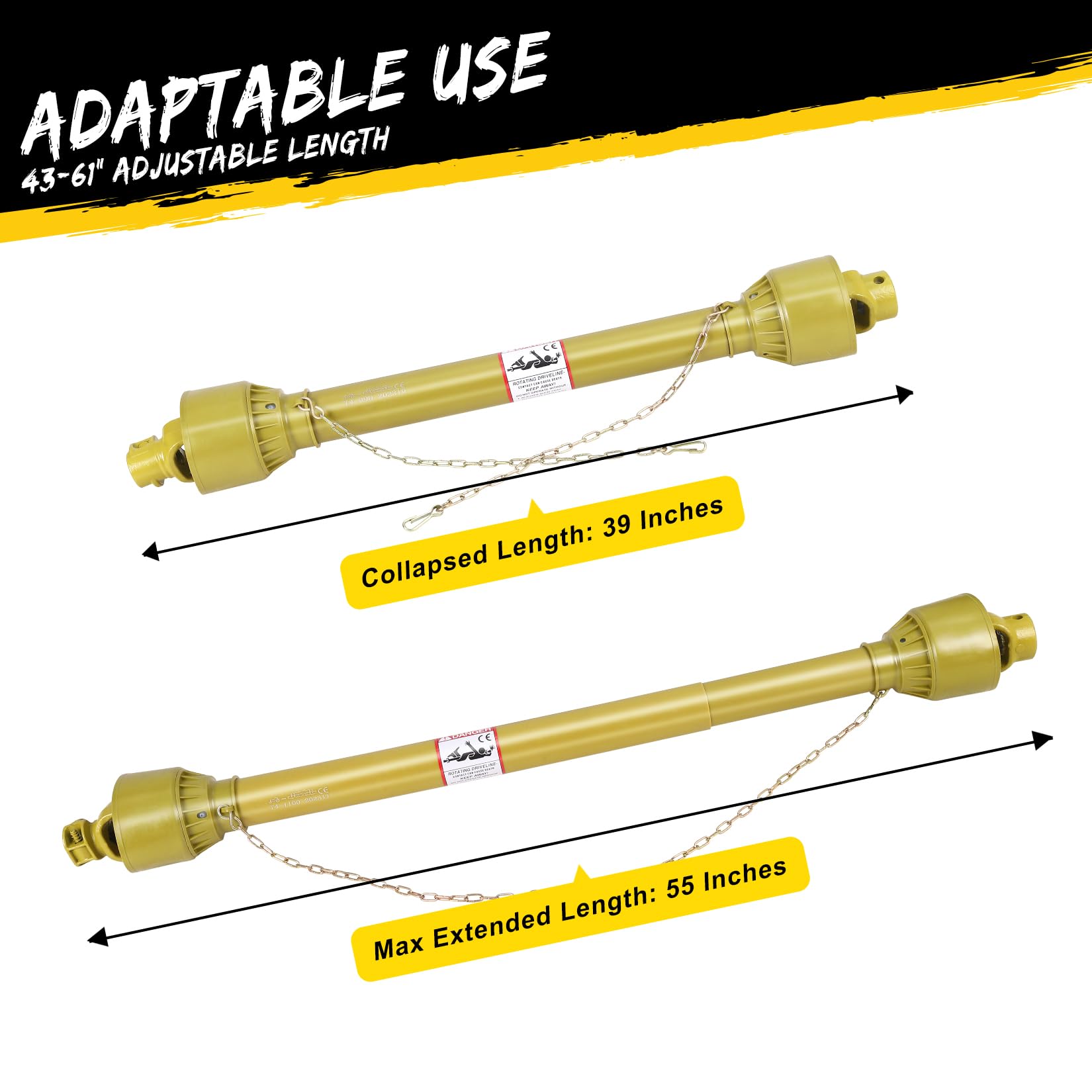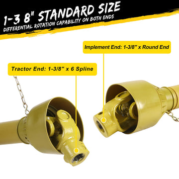 Garvee PTO Shaft 1 3/8" PTO Drive Shaft, Round Ends PTO Driveline Shaft, 6 Spline End Tractor, Brush PTO Shaft, Yellow PTO Shaft for Finish Mower, Rotary Cutter,39"-55"