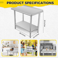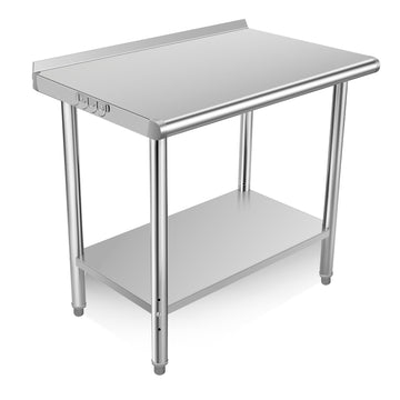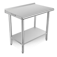 Garvee 36"L x 24"W x 35"H Stainless Steel Table Kitchen Prep Work Tables with Backsplash, NSF Commercial Worktable with Adjustable Under Shelf for Restaurant Home and Hotel