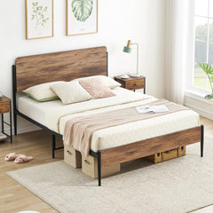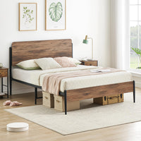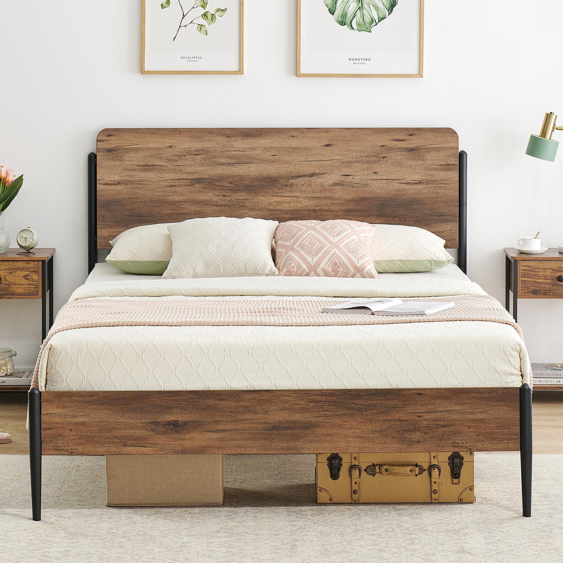 Garvee Queen Bed Frame with Wooden Headboard & Footboard, Heavy Duty Metal, Storage, Easy Assembly, Walnut Finish, No Box Spring Needed