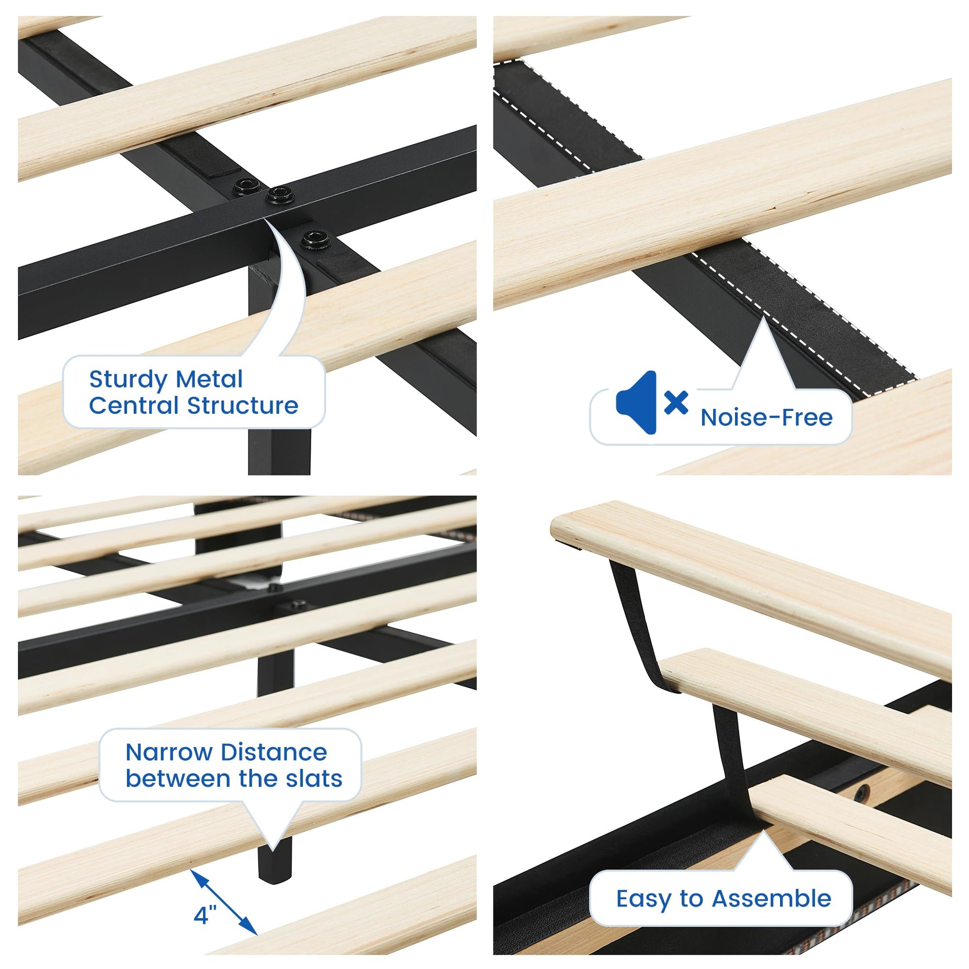 With its sturdy metal and wood construction, upholstered platform, and easy assembly process, this bed frame combines durability with convenience. The sleek black finish adds a touch of sophistication to any bedroom decor.