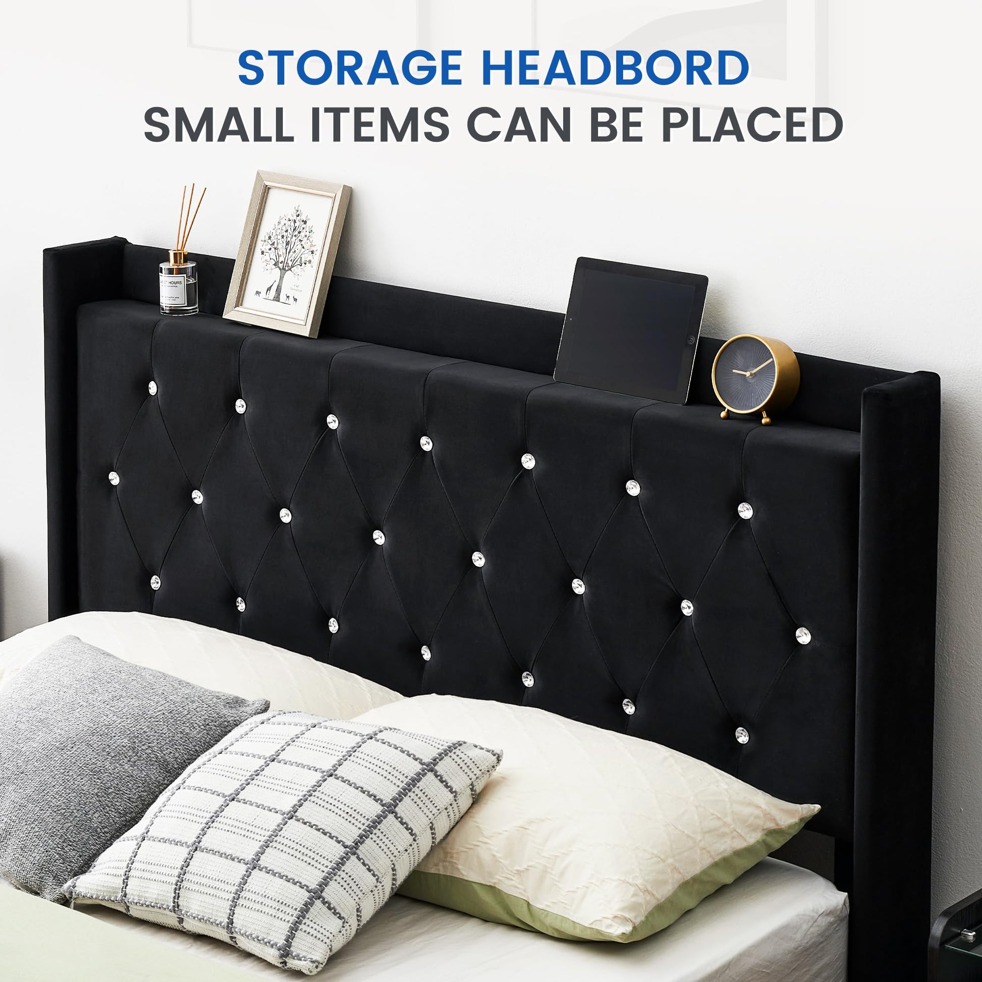 Built-in storage headboard provides ample space for books, devices, and bedtime essentials, keeping your room tidy.
