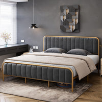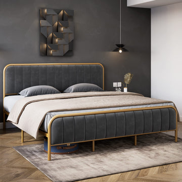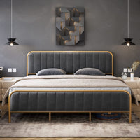 Experience comfort and style with the GARVEE Queen Gold Platform Bed Frame