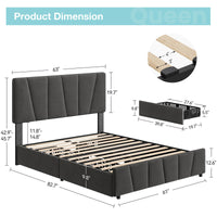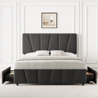 Garvee Queen Size Bed Frame with Adjustable Headboard, 4 Storage Drawers, Velvet Upholstery, Wooden Slats, Dark Grey