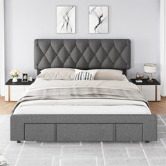 Garvee Queen Size Bed Frame with Storage Drawers, Upholstered Platform Bed Frame with Adjustable Button Tufted Headboard, Mattress Foundation with Solid Wooden Slats Support, No Box Spring Needed