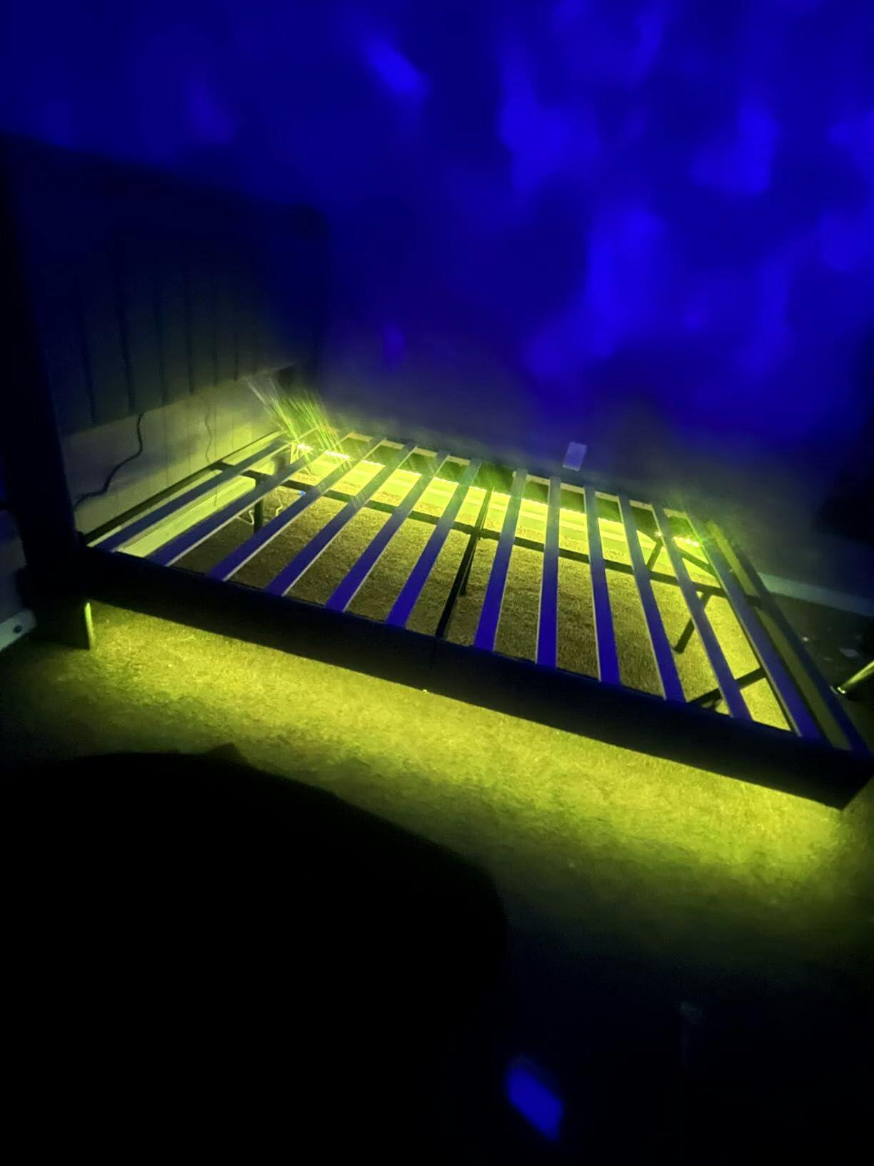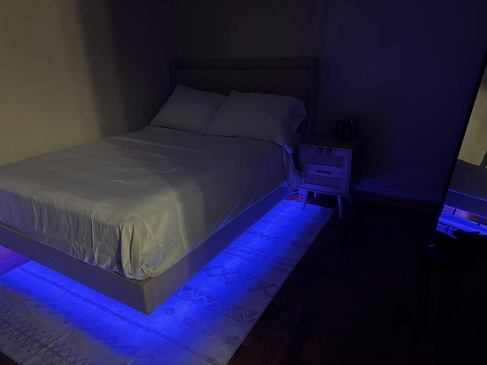 - 【Built-in LED Light】This bed frame is equipped with built-in LED lights, offering thousands of color options. With the smart control function, you can easily adjust the light's color, brightness, mode, and set timers. It can create the perfect ambiance for your bedroom according to your need.